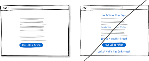 Un enlace es darle la oportunidad al usuario de que se vaya y no regrese. Dos enlaces son darle dos oportunidades. Cuando se cuenta con una landing page para captar leads o ventas, no se debe colocar en la interfaz de usuario ningún enlace que no sea el llamado a la acción.